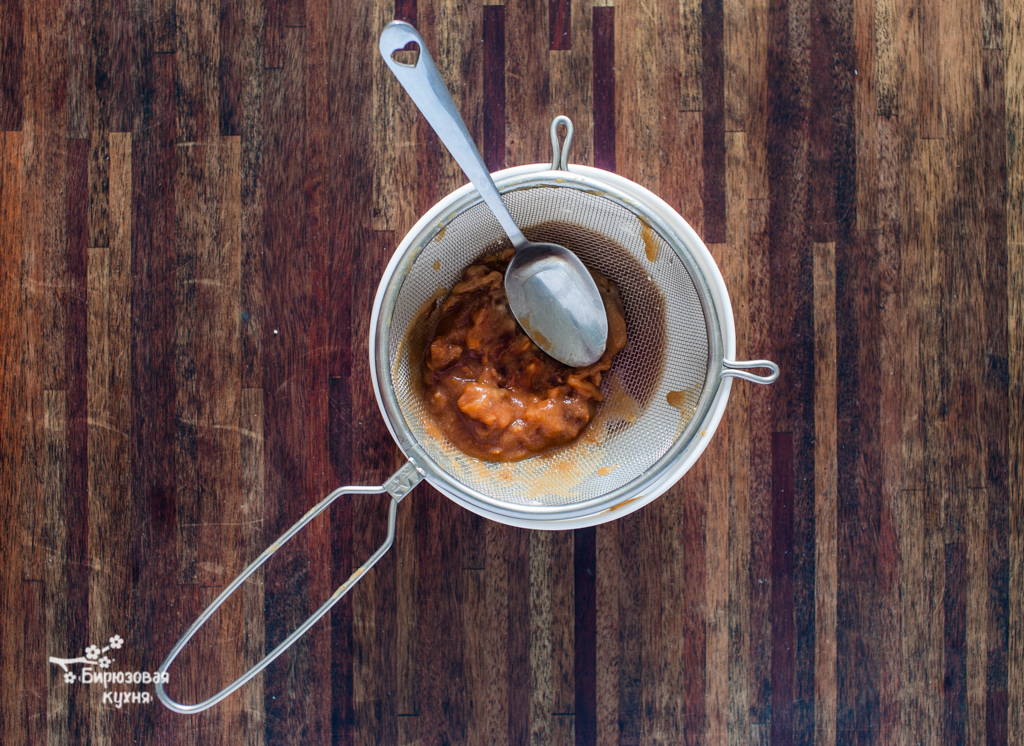 Через час протрем через крупное сито, нам отребуется та часть, что окажется в чашке.